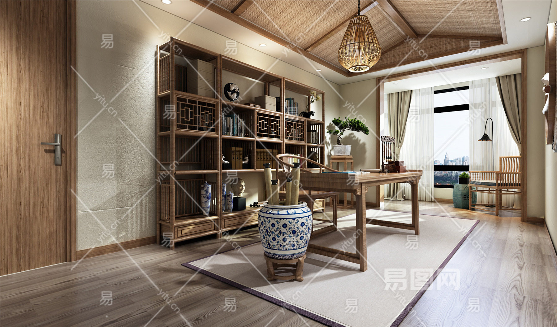 当前的位置:首页 > 3D模型 > 家装空间 > 书房 > 新中式书房 玄关 书桌 柜子