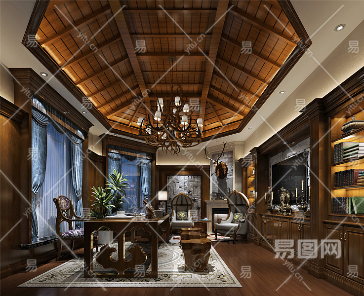 当前的位置:首页 > 3D模型 > 家装空间 > 书房 > 美式书房 吊灯 摆件 休闲椅