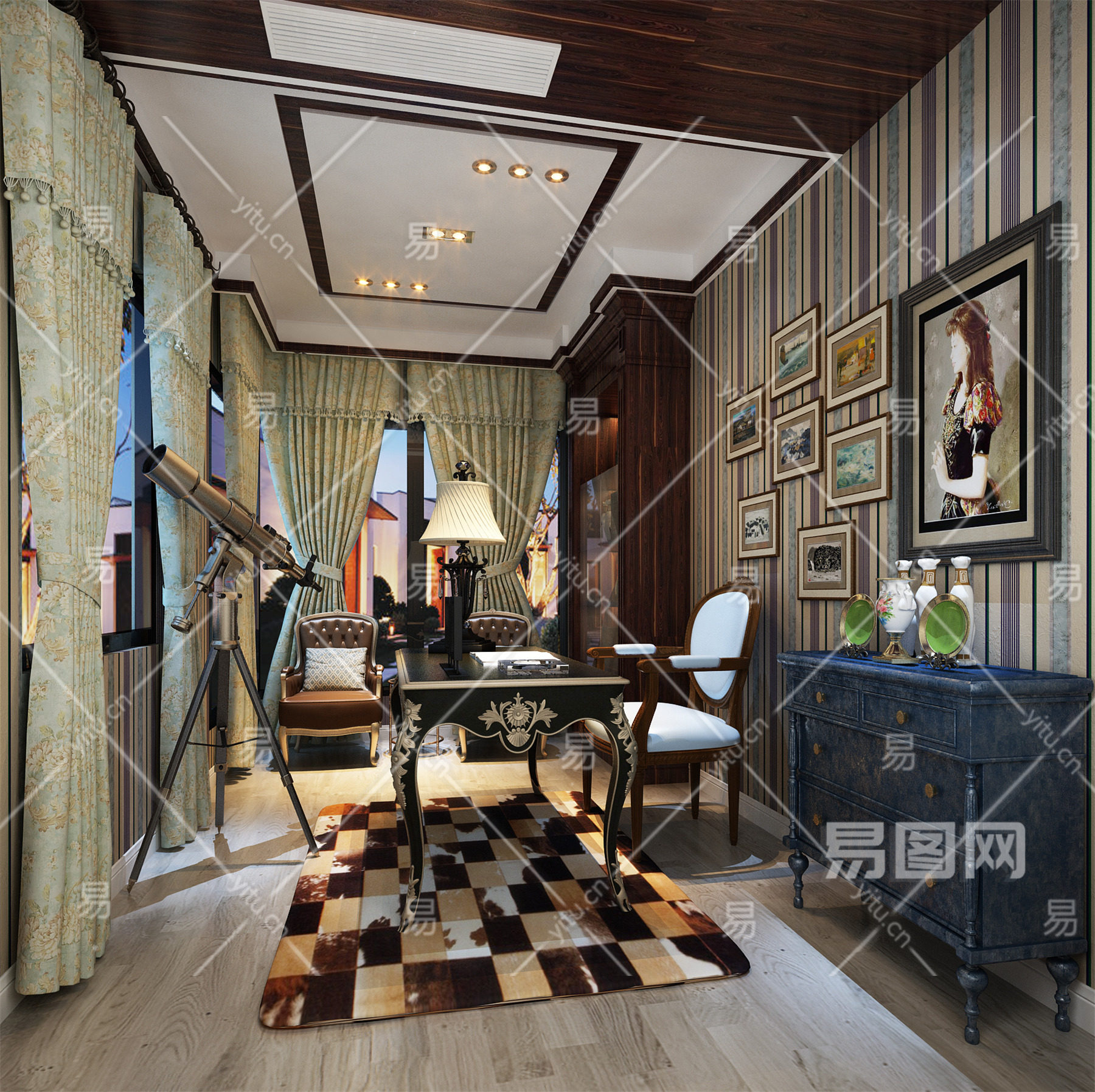 当前的位置:首页 > 3D模型 > 家装空间 > 书房 > 美式书房 摆件 画 边柜