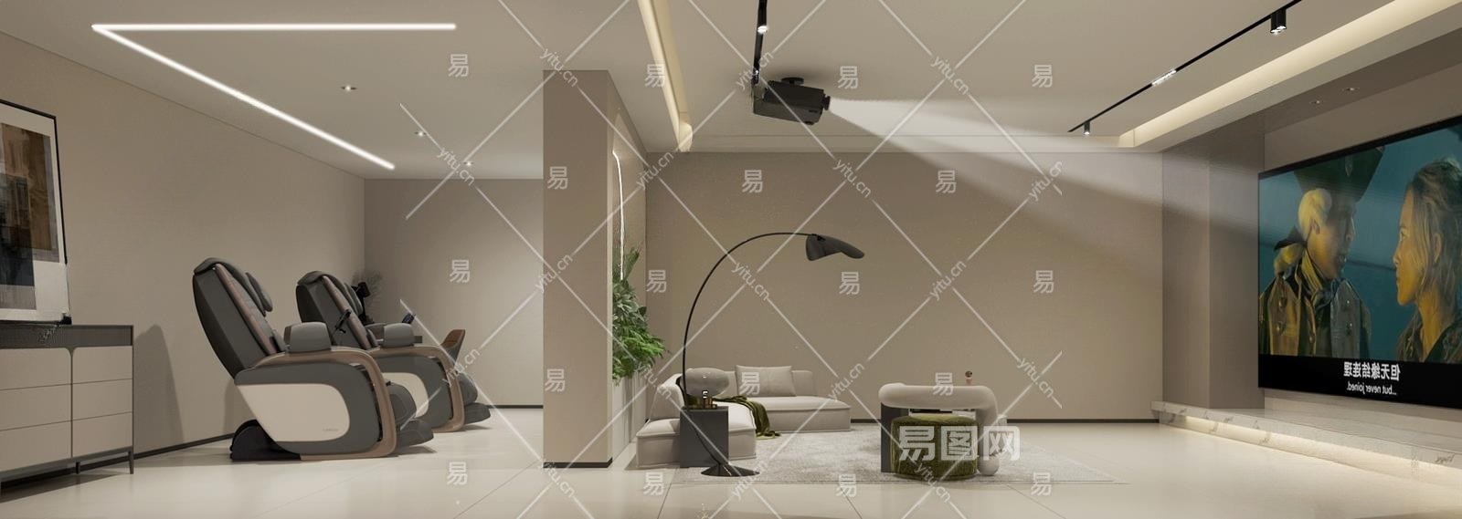 现代地下室影音室3D模型下载