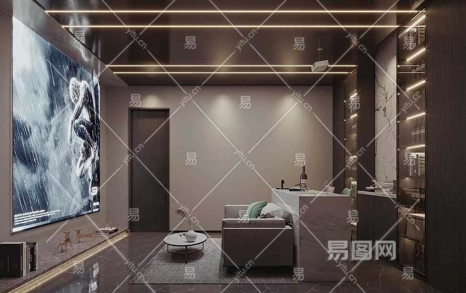 现代家居影音室3D模型下载