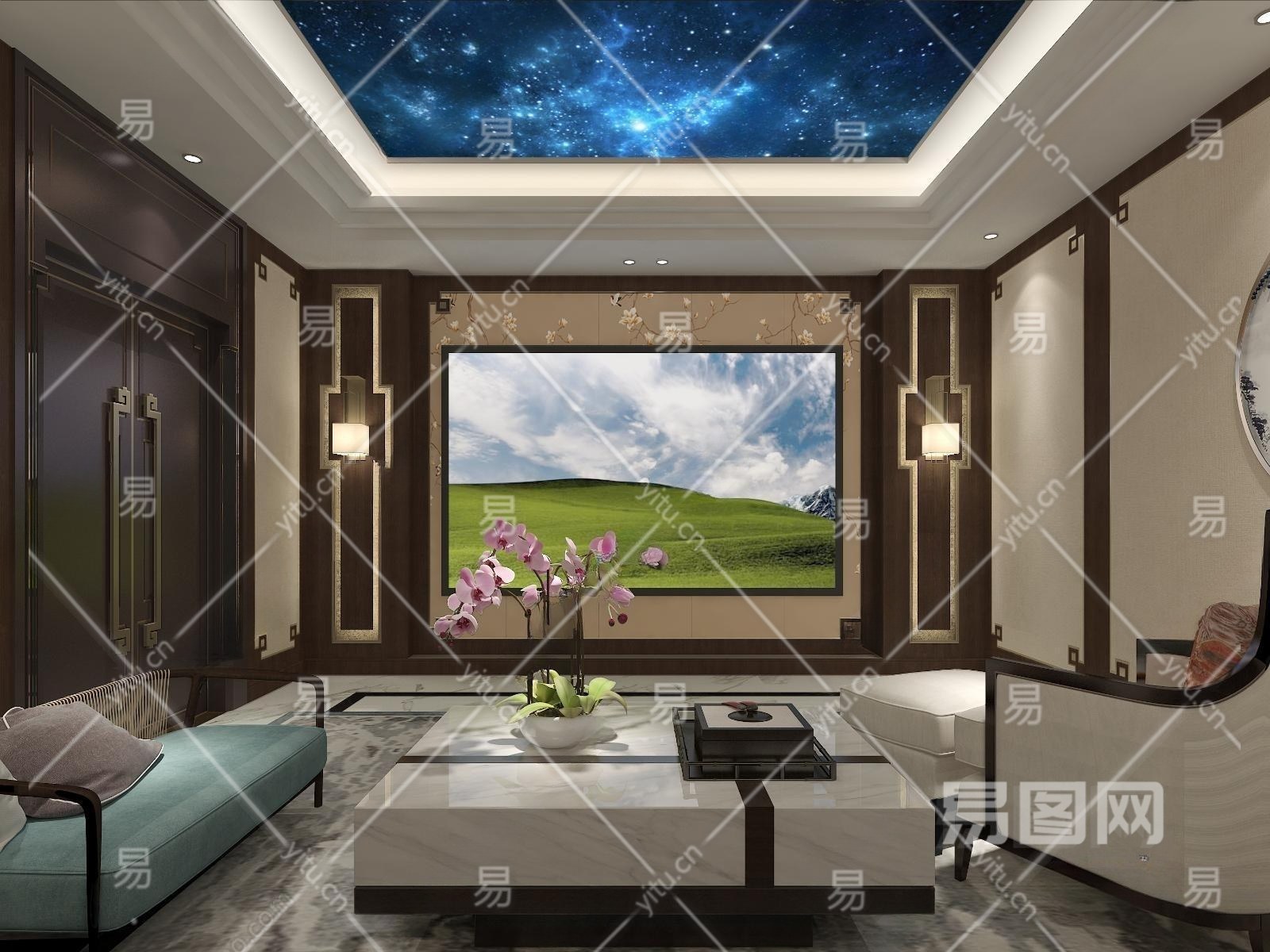新中式影音室3D模型下载