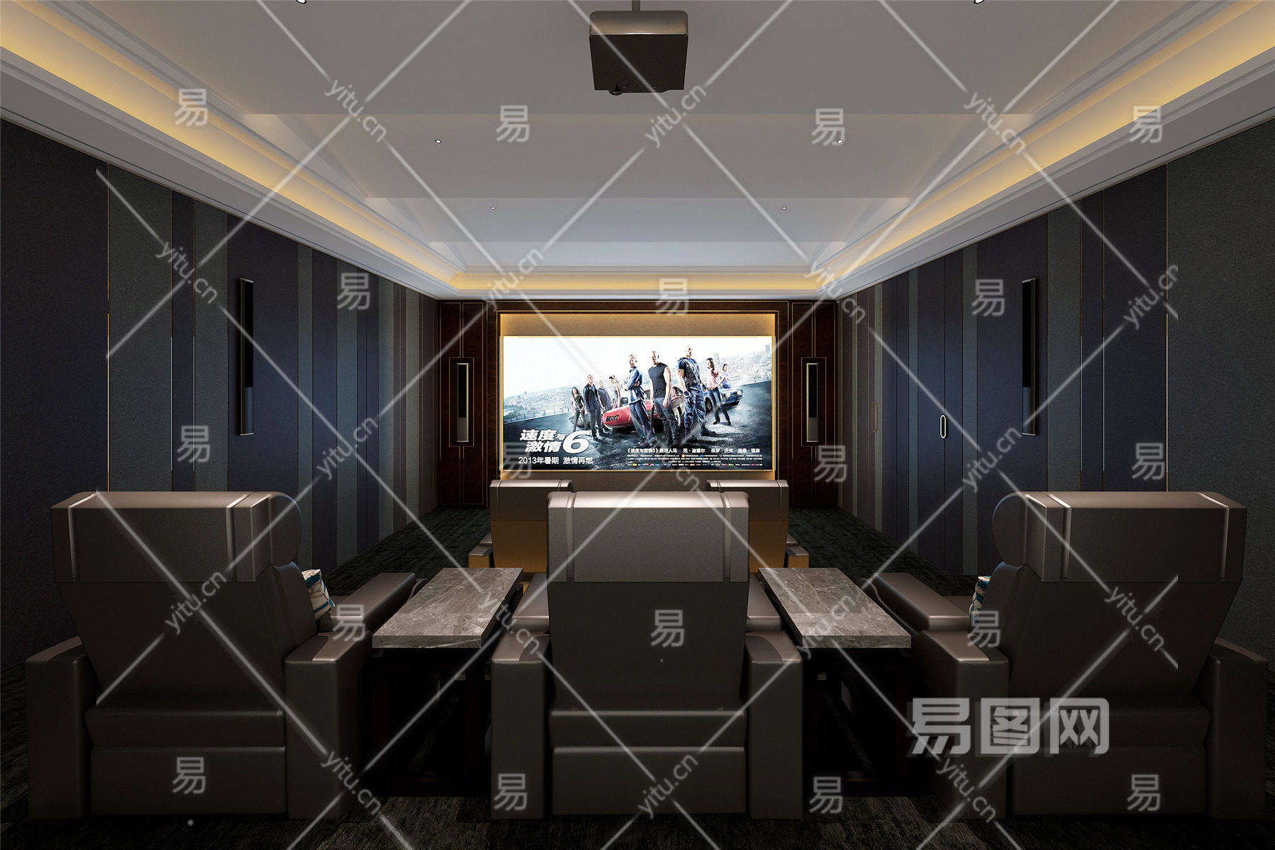 后现代影音室 按摩躺椅 音箱 护墙板 背景墙 投影幕布
