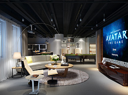 工业风影音娱乐室 沙发茶几 桌球 钓鱼灯 酒吧吧台