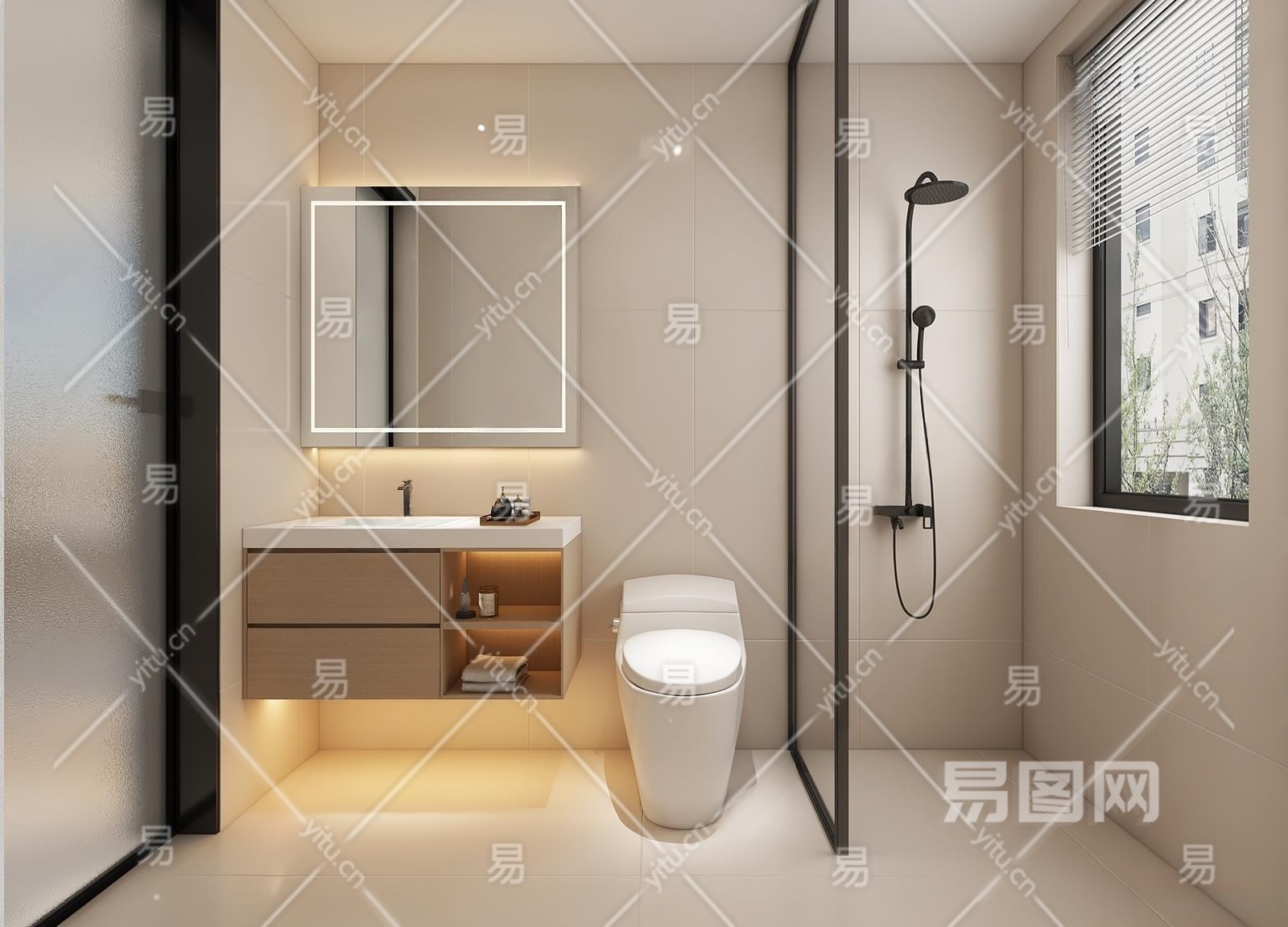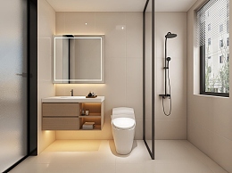 现代奶油风卫生间3D模型下载