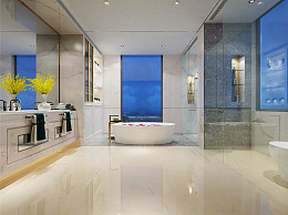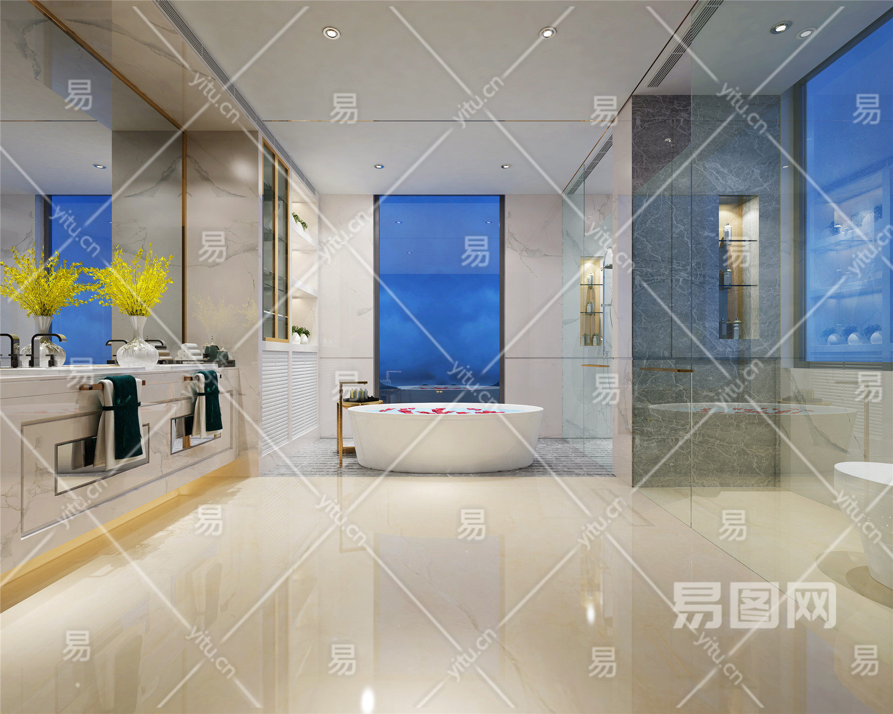 现代别墅卫生间沐浴间 洗手台 浴缸 马桶