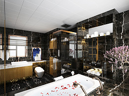 新中式卫生间沐浴间 洗手台 浴缸 马桶