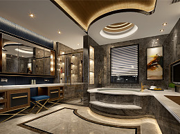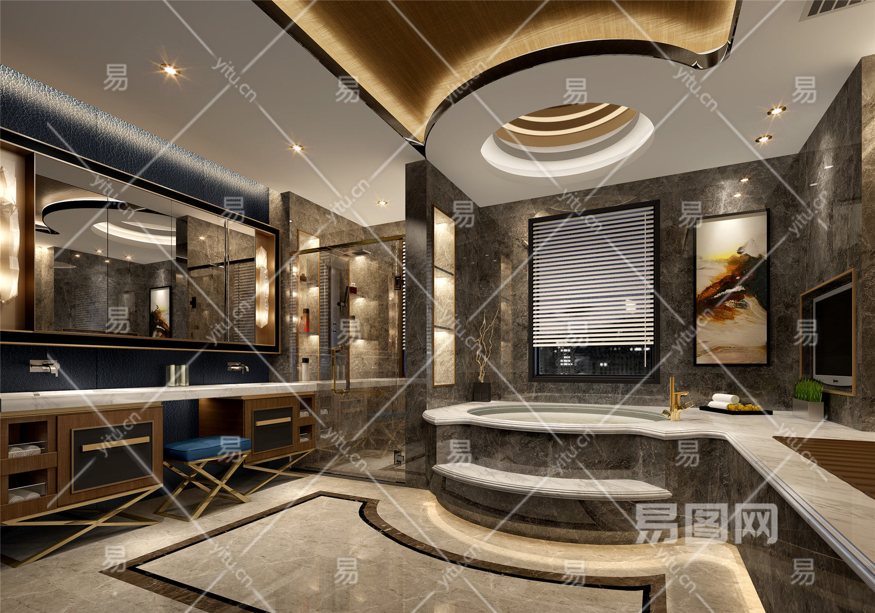 现代卫生间 沐浴间 浴缸 洗手台 画-1