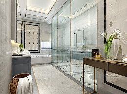 现代浴室卫生间 马桶 淋浴间 洗漱台 梳妆镜