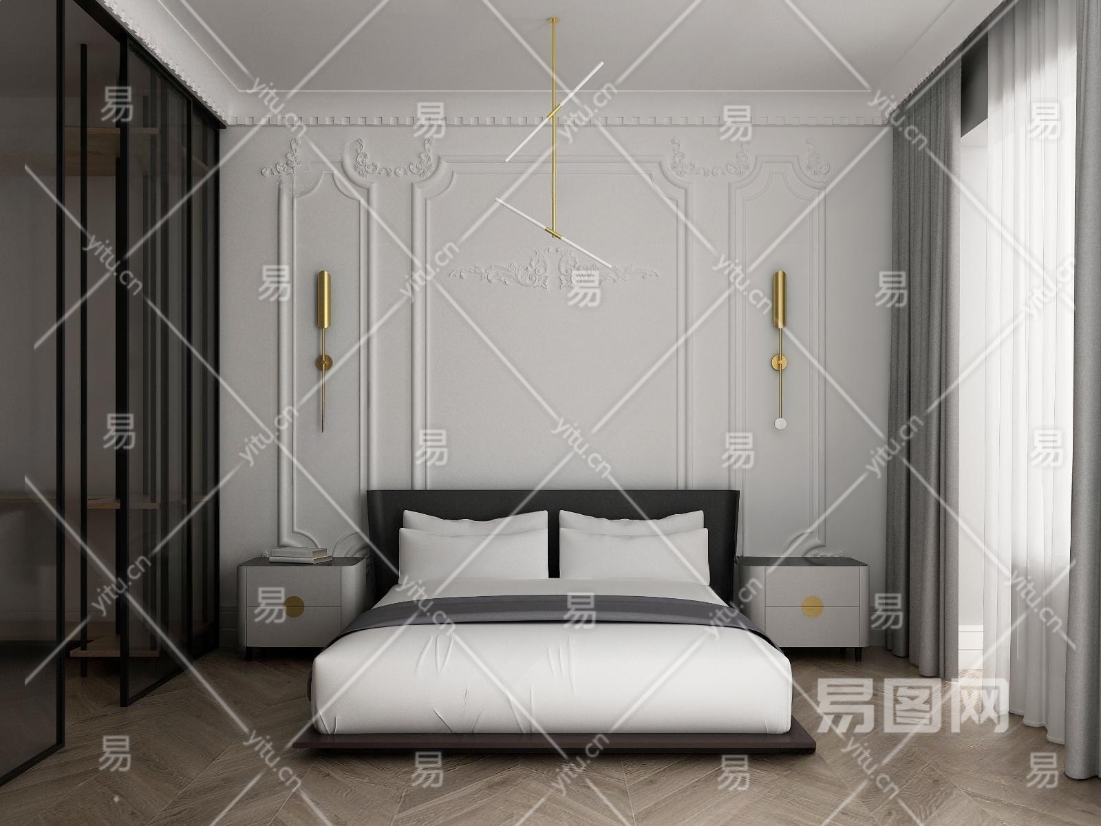现代北欧卧室3D模型下载