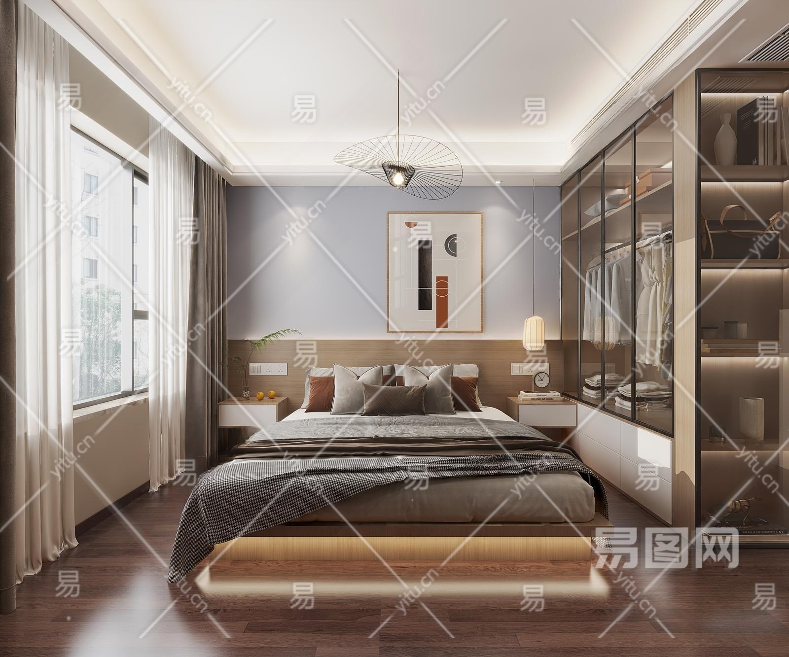 北欧原木风卧室3D模型下载