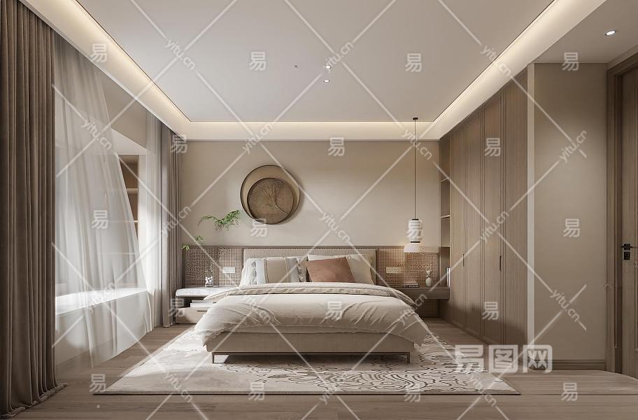 侘寂风家居卧室3D模型下载