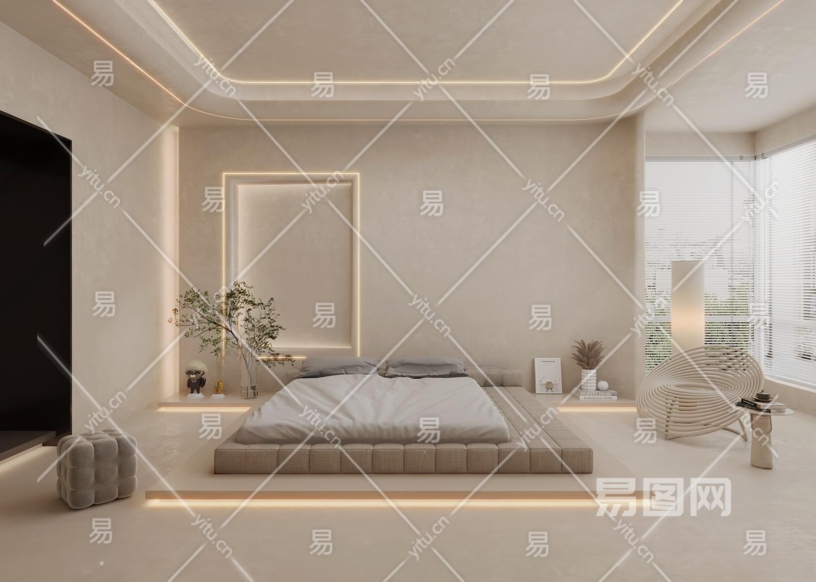 侘寂风卧室3D模型下载