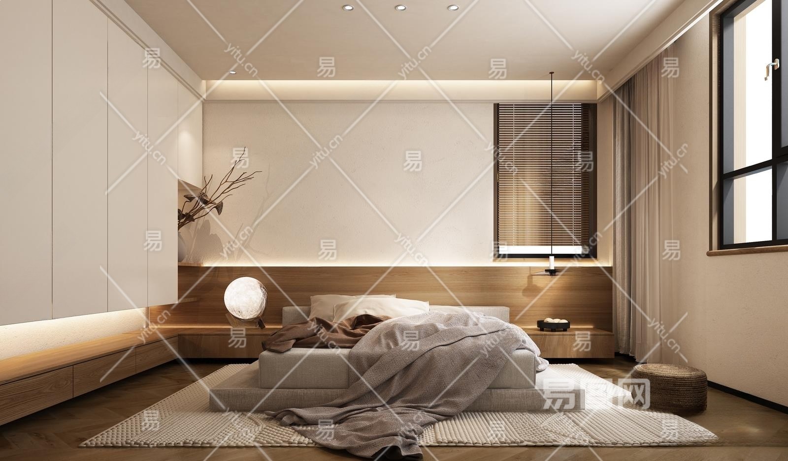 侘寂原木色卧室3D模型下载