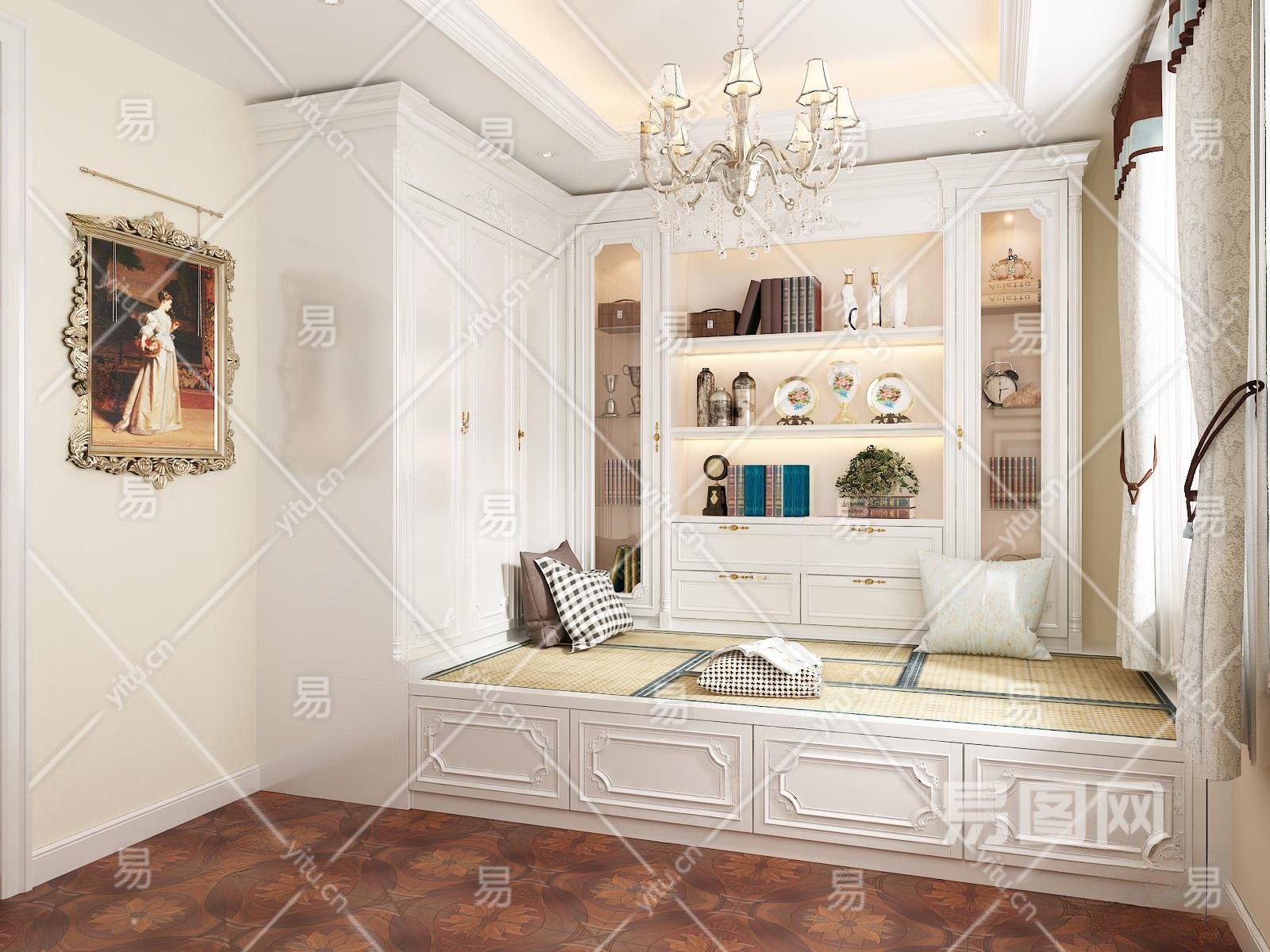 法式榻榻米卧室3D模型下载