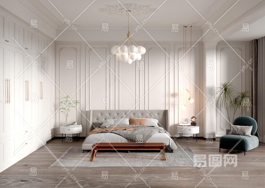 法式卧室3D模型下载
