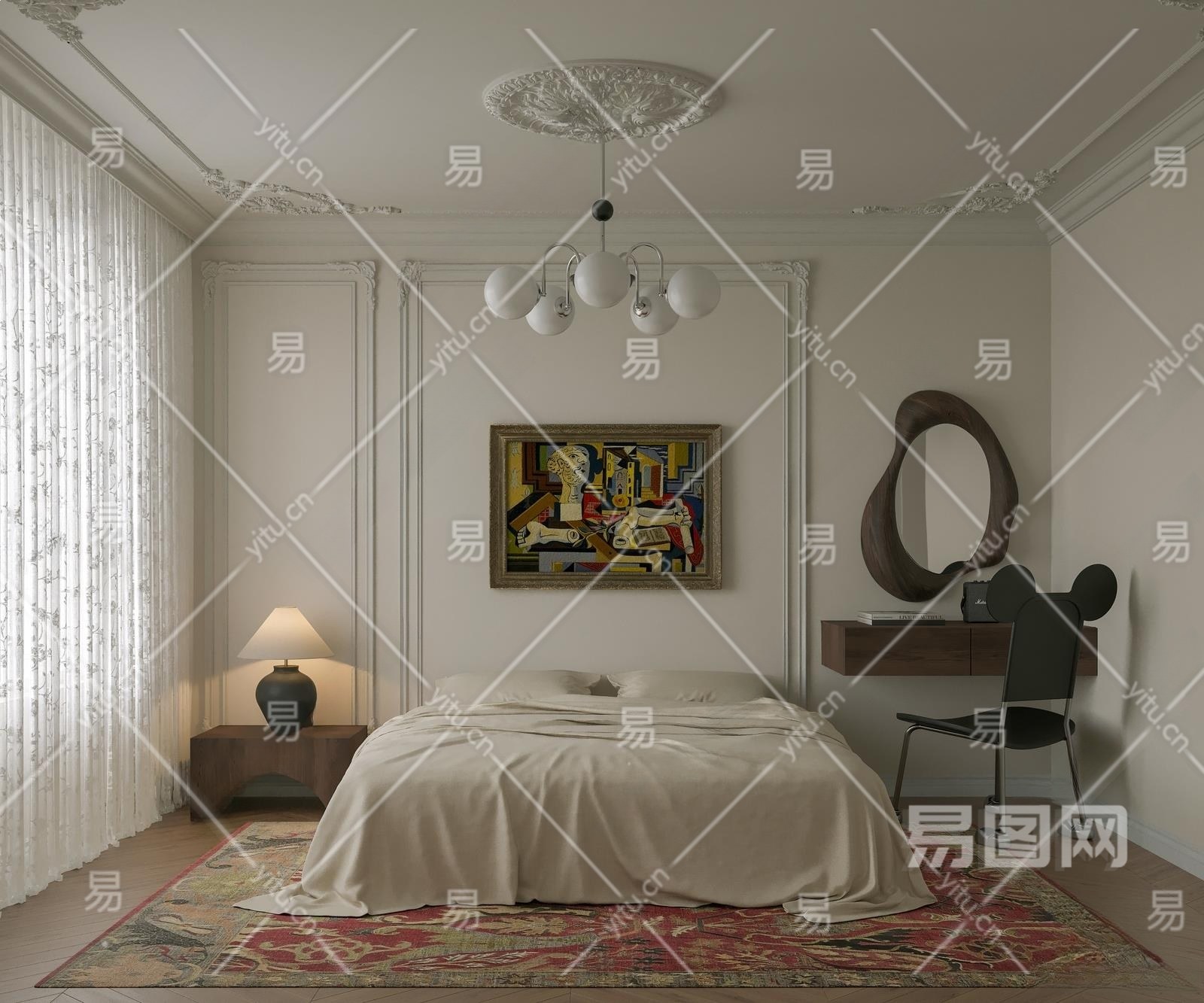 法式卧室3D模型下载