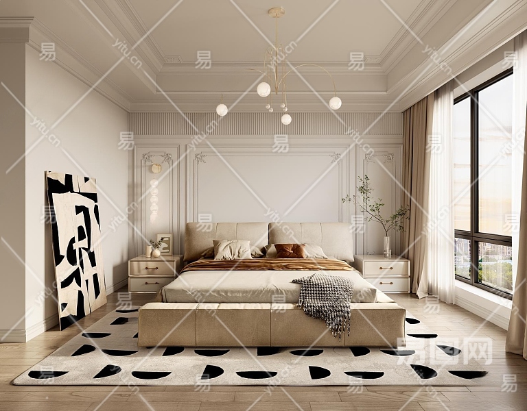 法式奶油风卧室3D模型下载