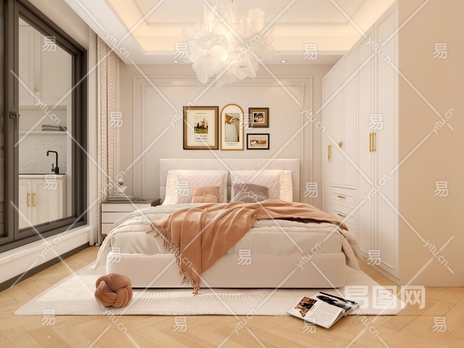 法式奶油风卧室3D模型下载