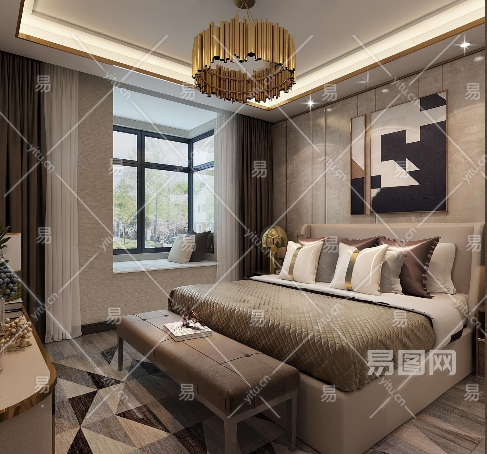 后现代现代卧室3D模型下载