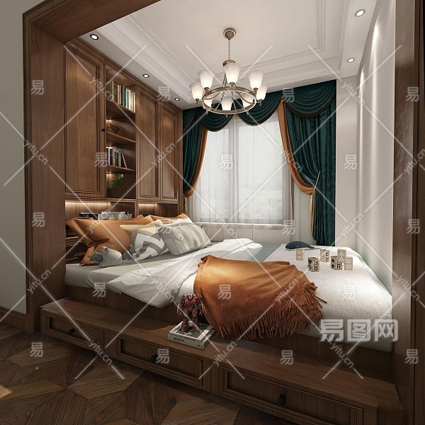 美式榻榻米卧室3D模型下载