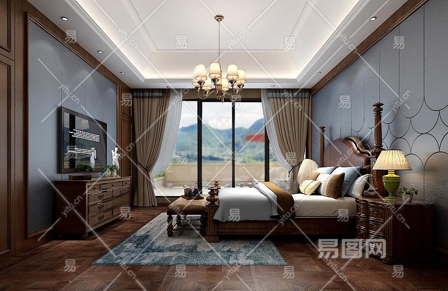 美式家居卧室3D模型下载