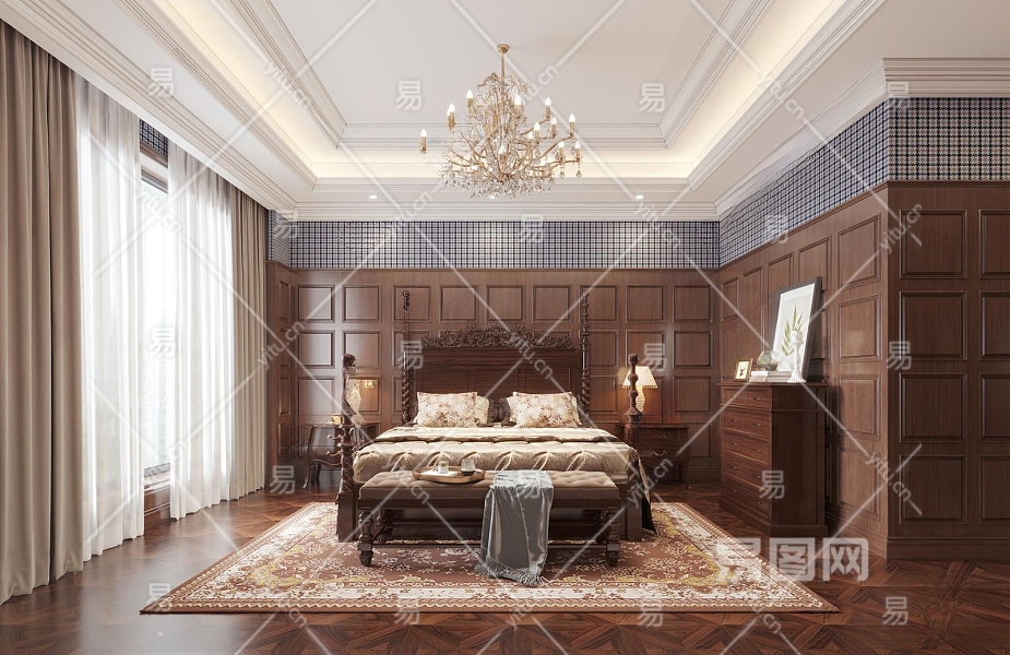 美式家居卧室3D模型下载