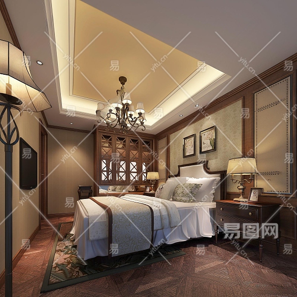 美式卧室3D模型下载