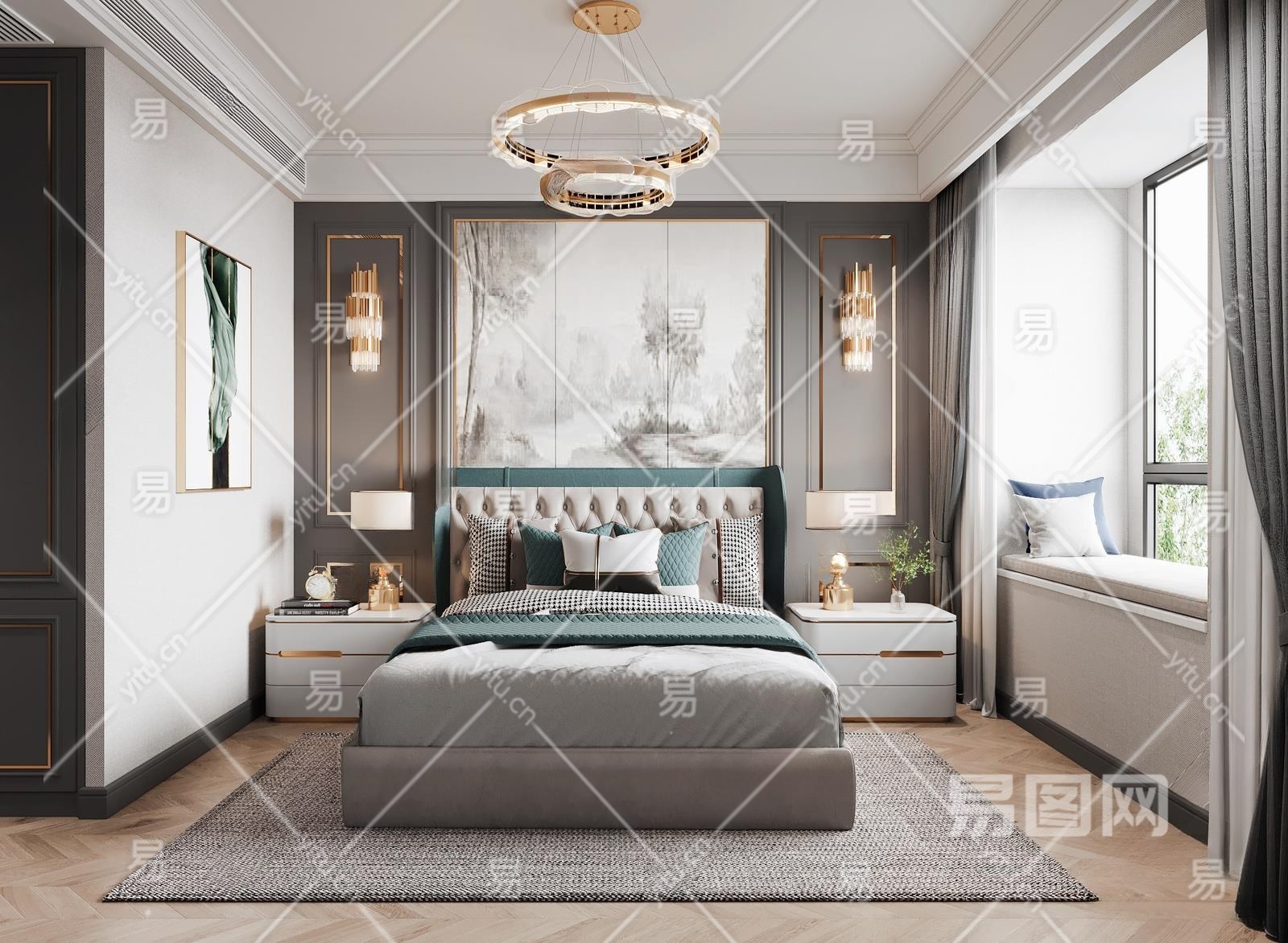 美式家居卧室3D模型下载