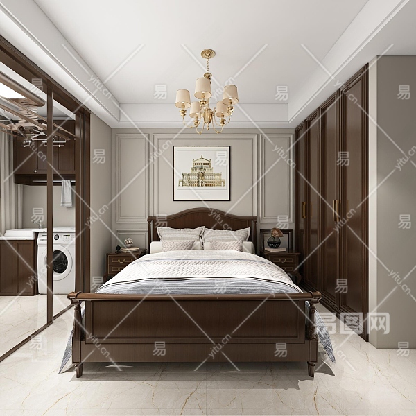 美式家居卧室3D模型下载