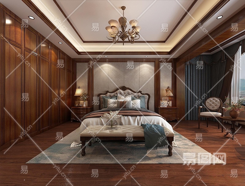 美式家居卧室3D模型下载