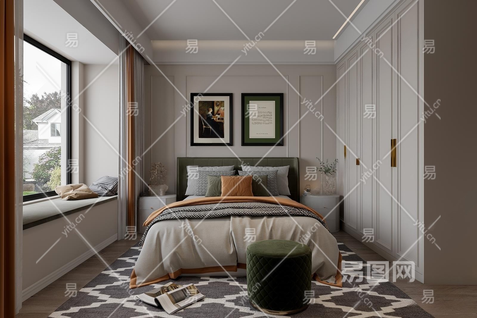 美式主卧室3D模型下载