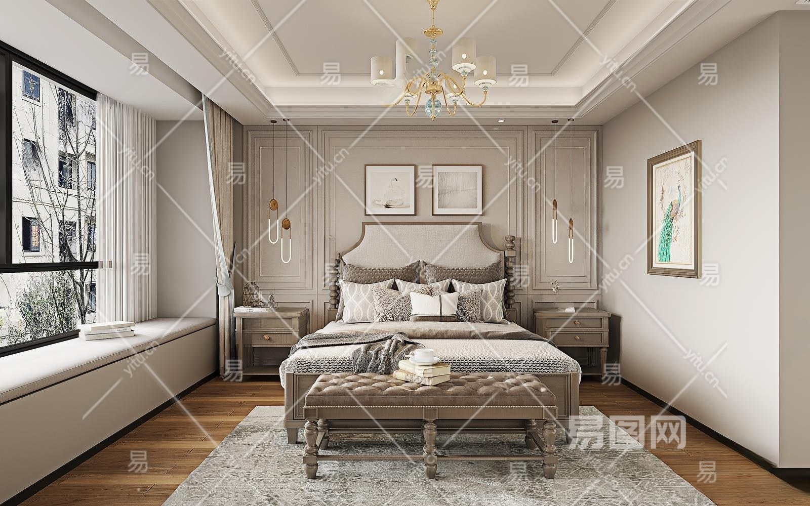 美式卧室3D模型下载