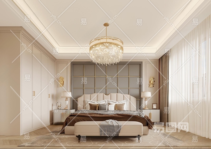 美式卧室3D模型下载
