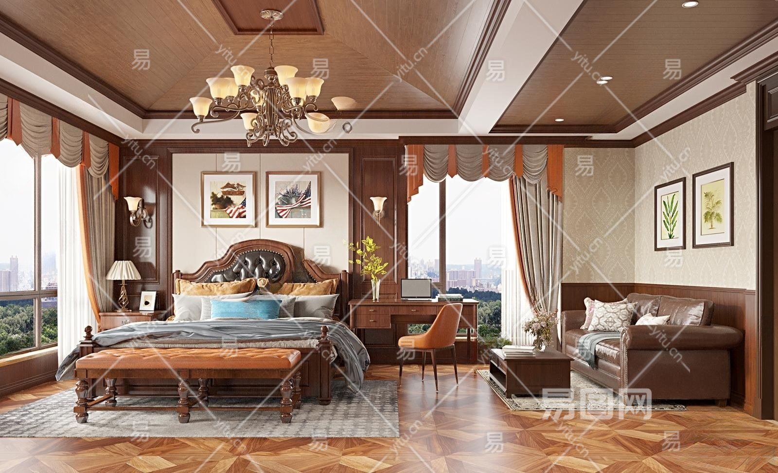 美式卧室3D模型下载
