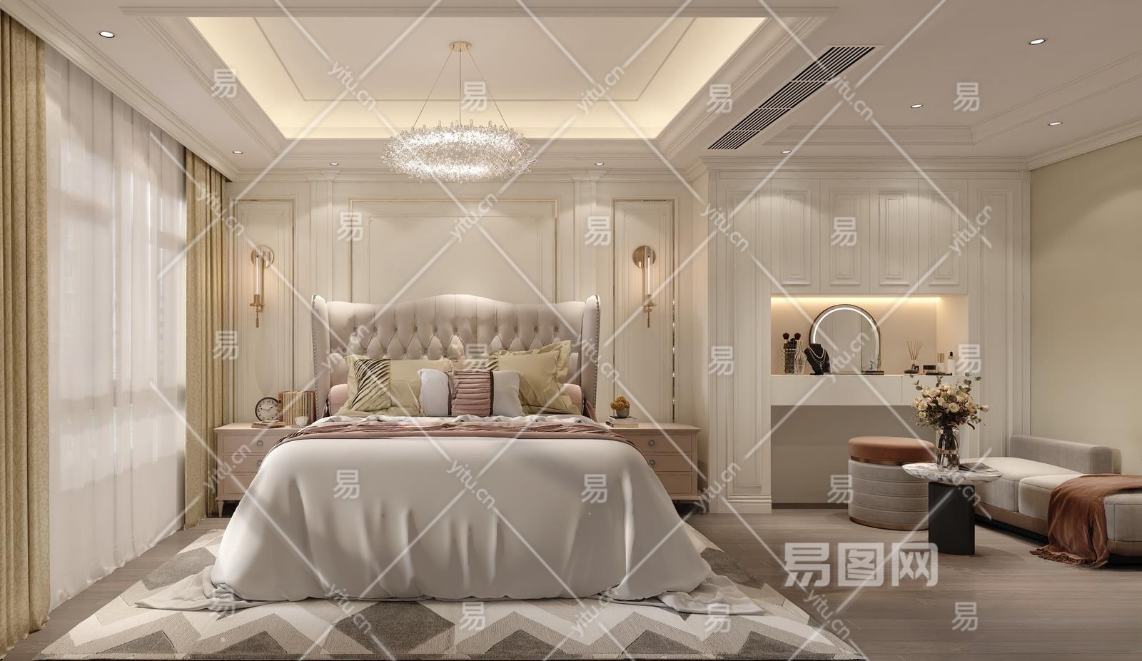 简欧家居卧室3D模型下载