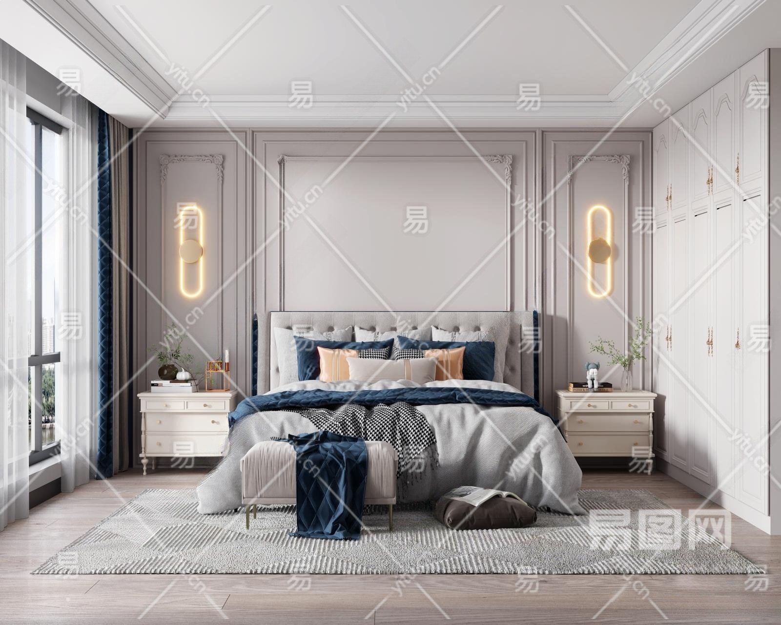 简欧卧室3D模型下载