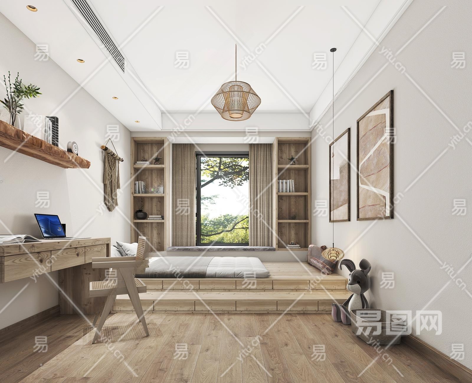 工业风家居卧室3D模型下载