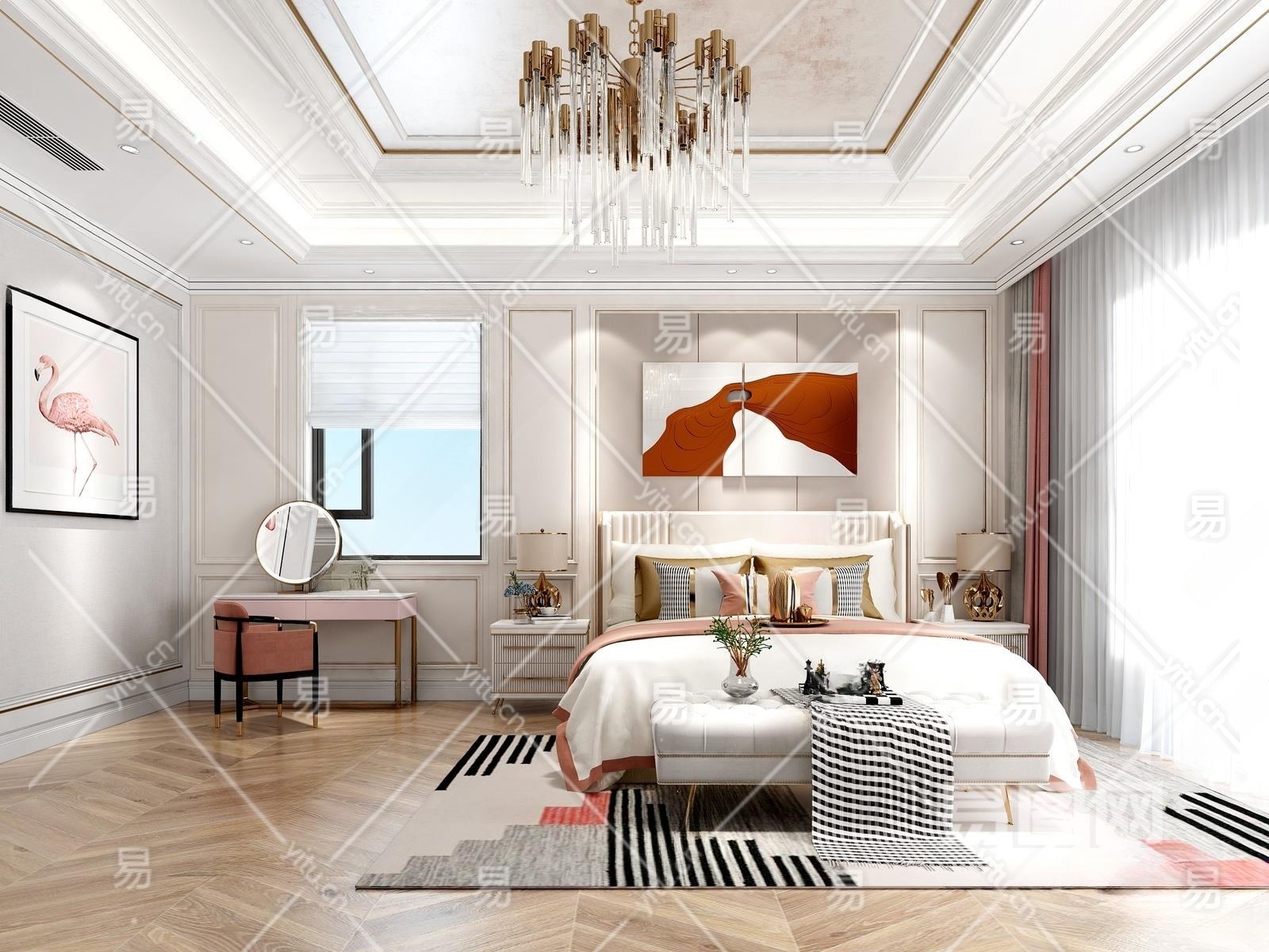 现代轻奢女孩房3D模型下载