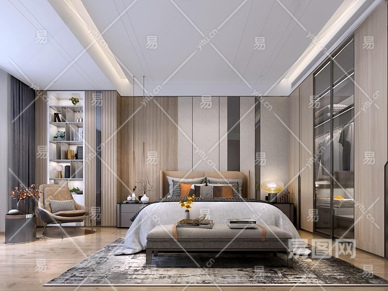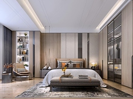 简欧轻奢主卧3D模型下载