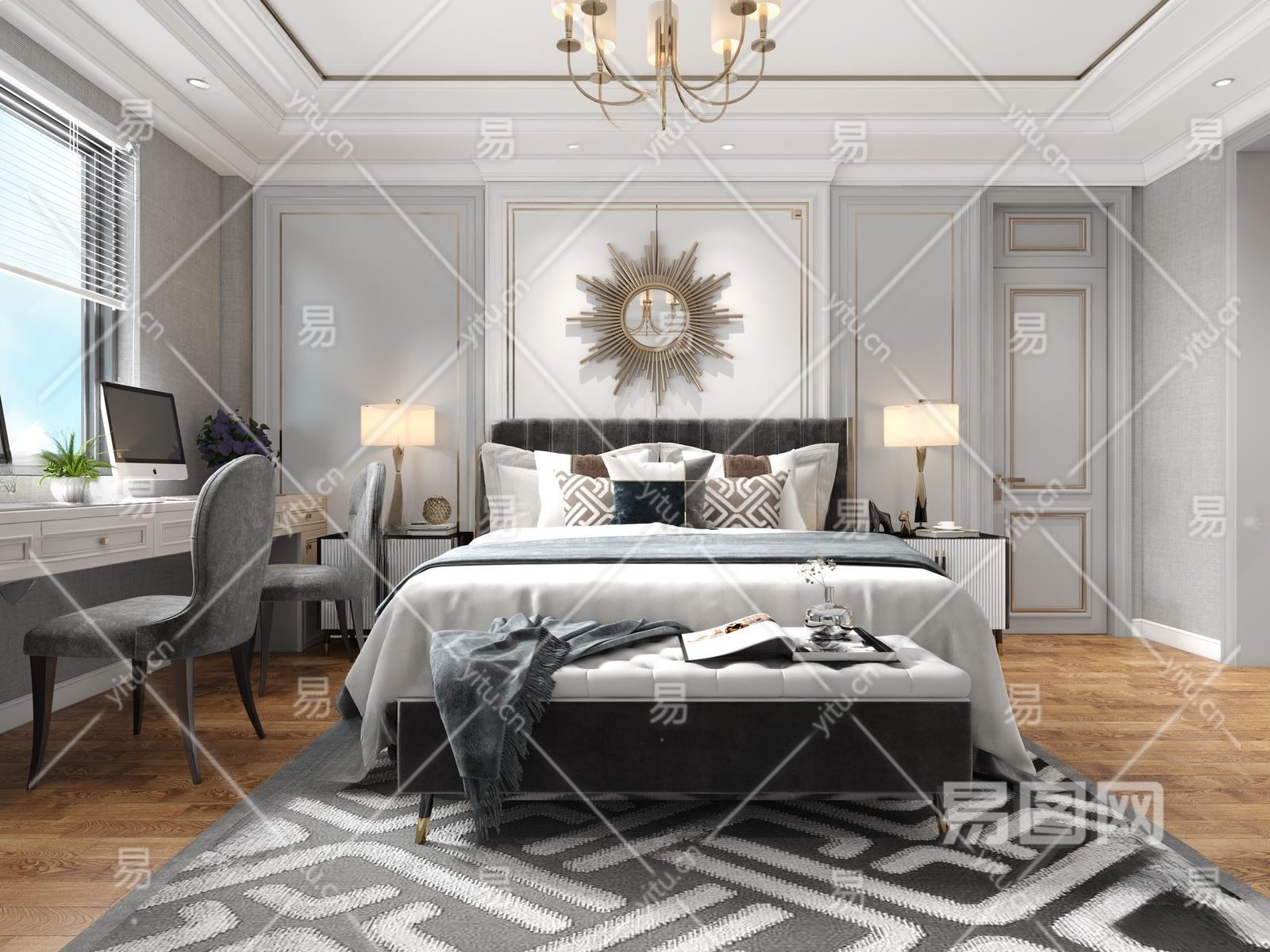 美式轻奢家居卧室3D模型下载
