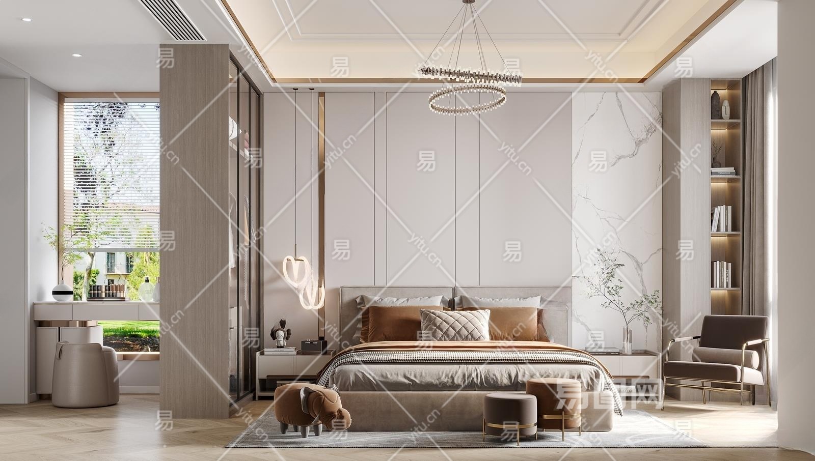 现代轻奢卧室3D模型下载