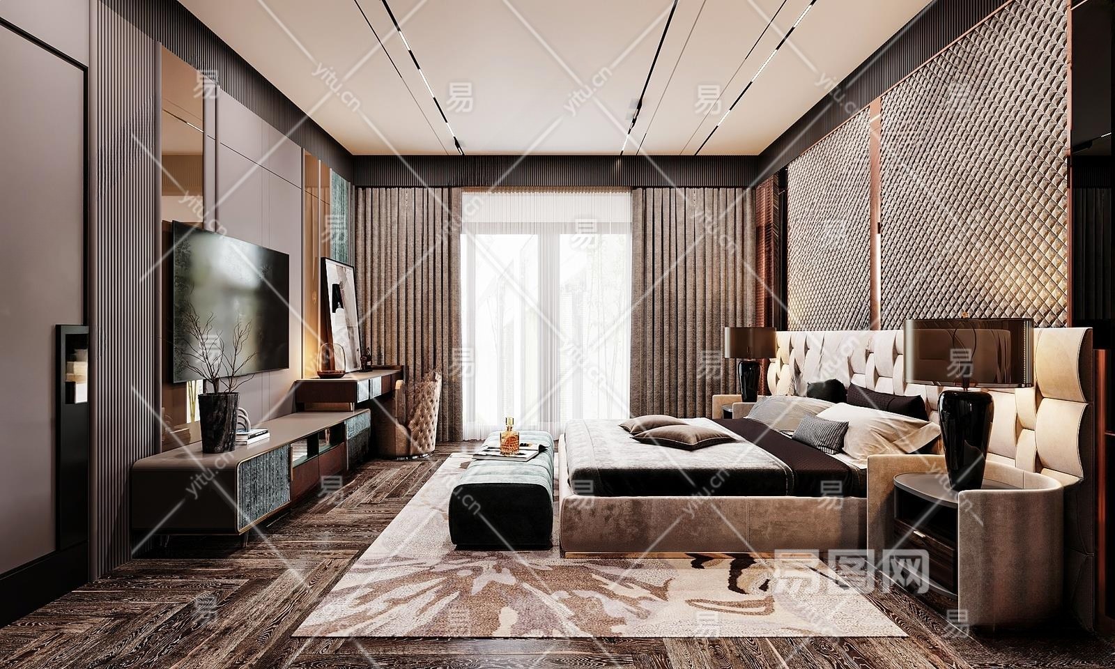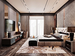 现代轻奢卧室3D模型下载