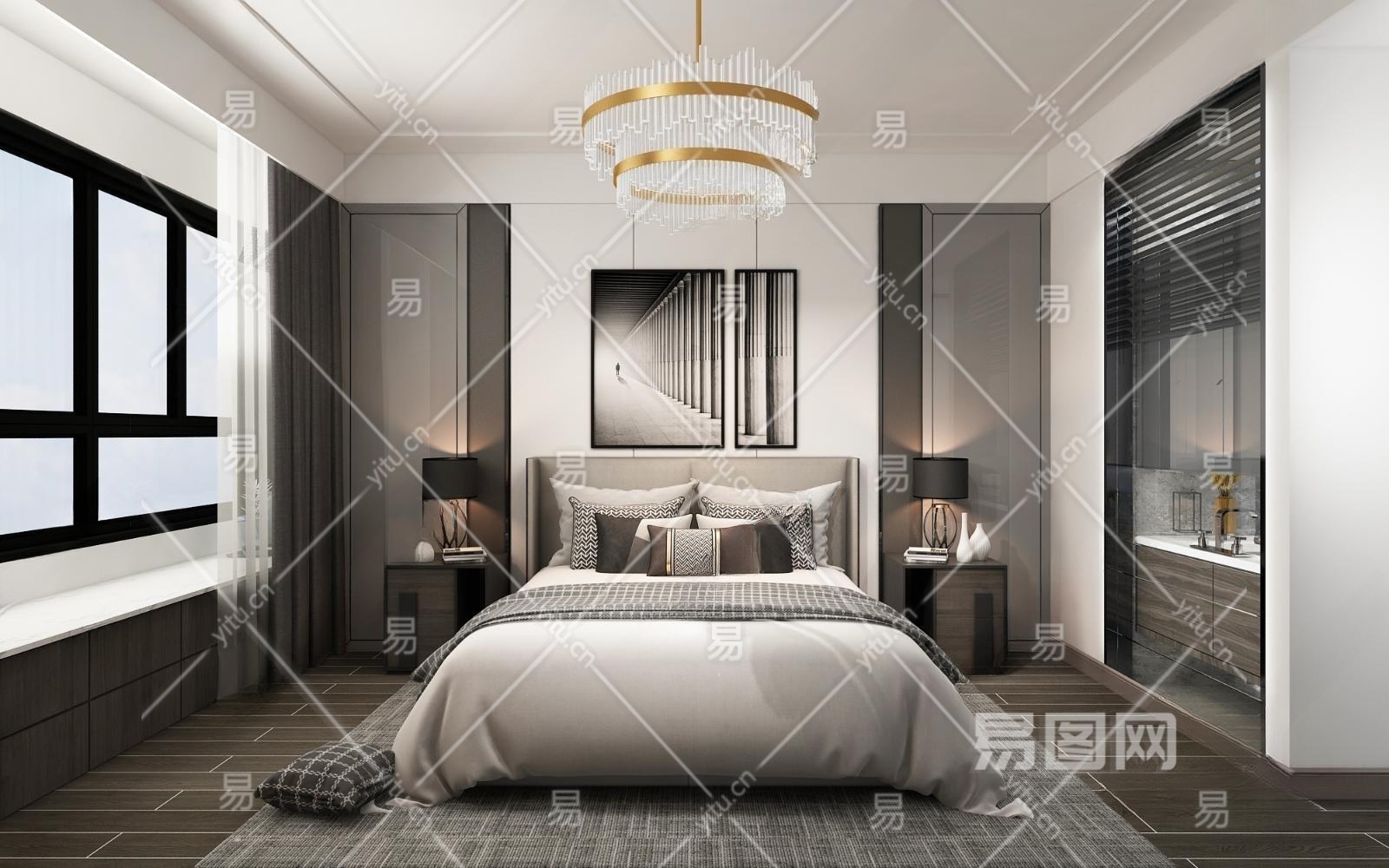 现代轻奢卧室3D模型下载