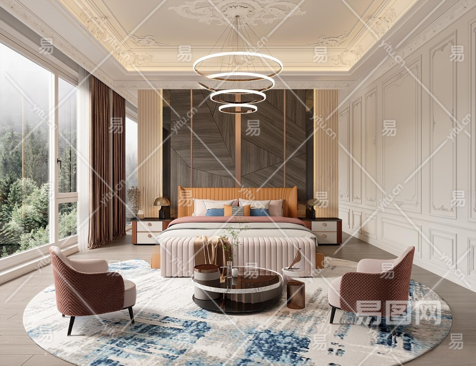 法式轻奢卧室3D模型下载