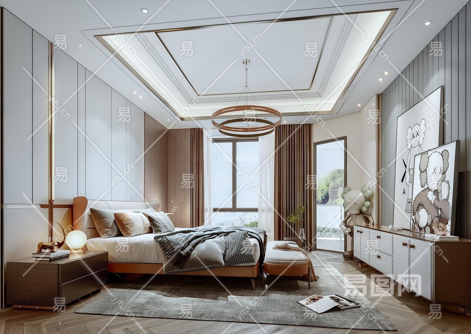 现代轻奢家居卧室3D模型下载