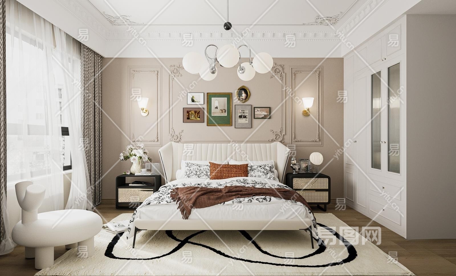 法式轻奢卧室3D模型下载
