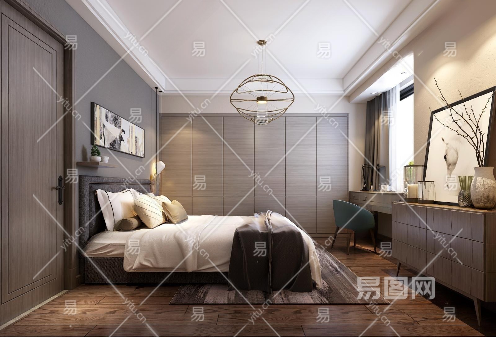 现代黑白灰卧室3D模型下载