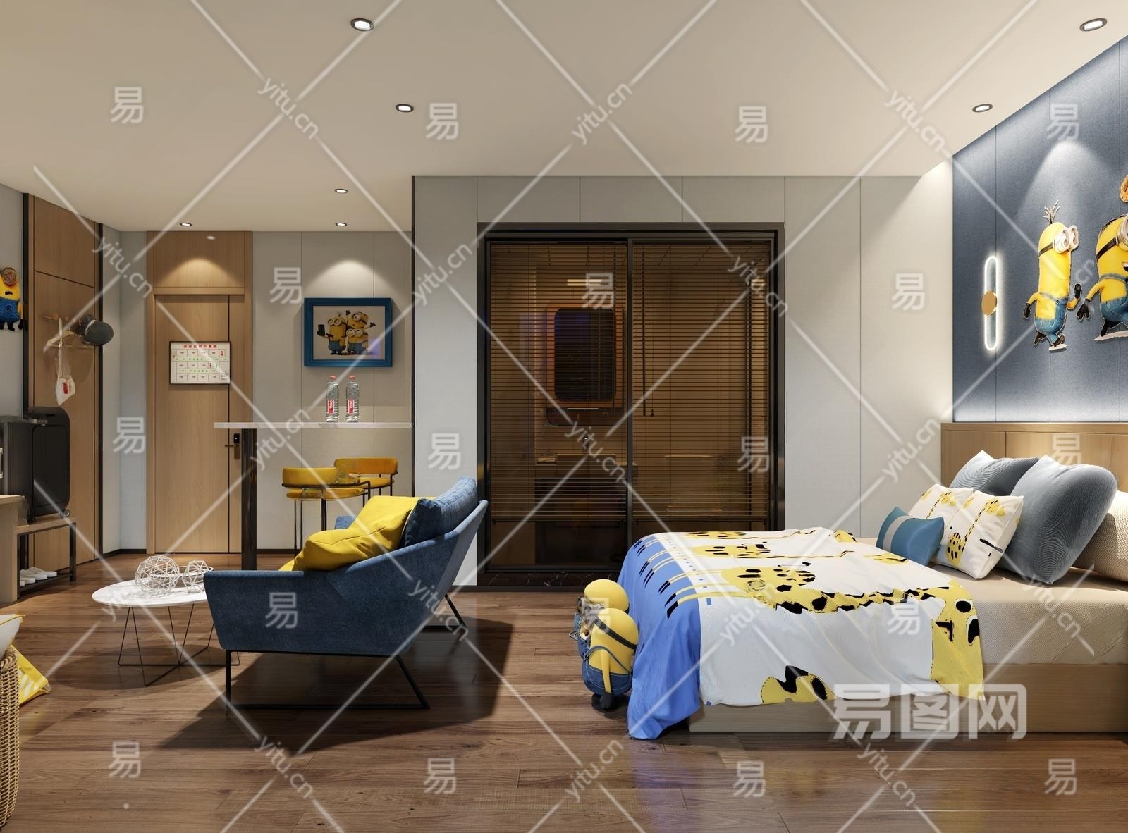 现代卧室3D模型下载