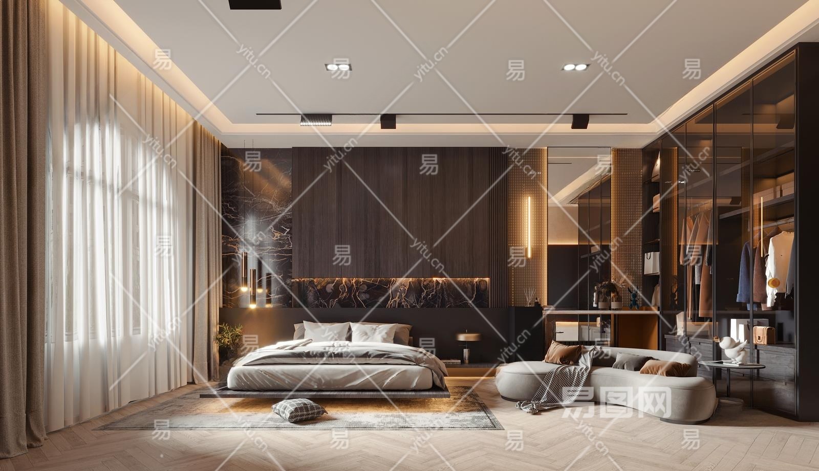 现代主卧3D模型下载